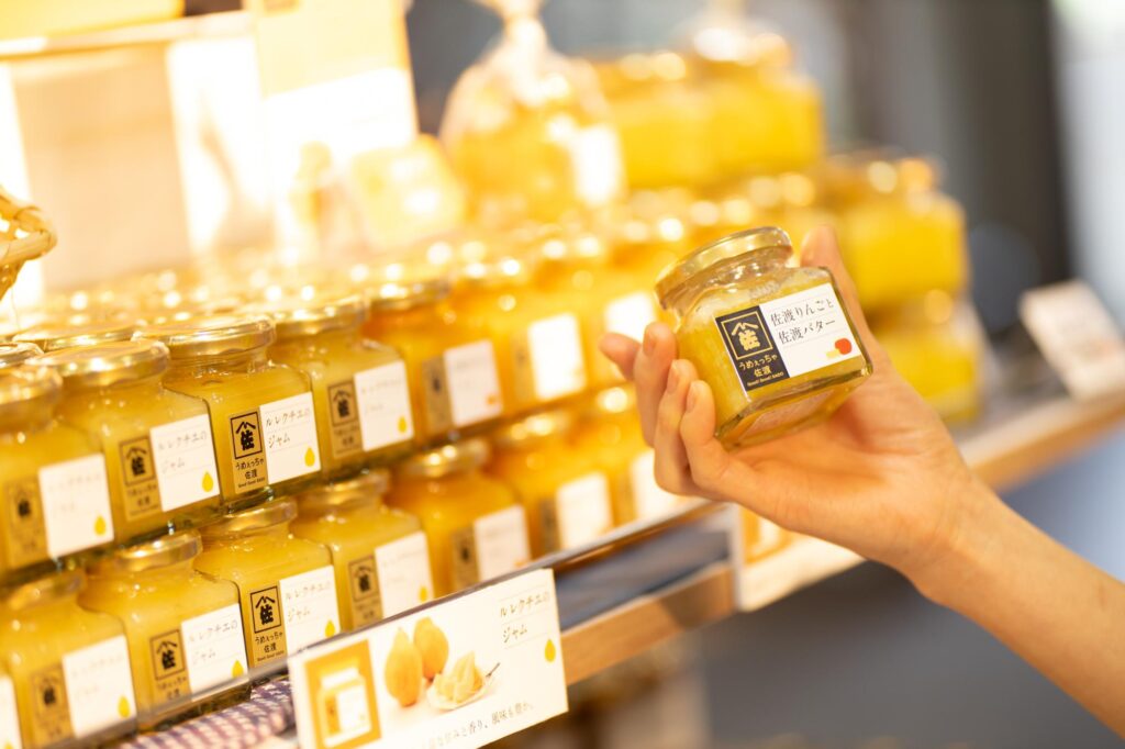 おススメは新潟県の離島佐渡ヶ島の食材を使った「うめぇっちゃ佐渡」シリーズ。ご飯のお供にピッタリの海の幸が詰まった瓶詰めや、パンに合うジャムやバターなど、佐渡の気候で育った厳選素材の味わいが楽しめます。