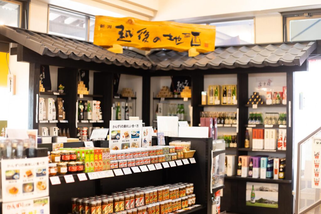 妙高市の伝統調味料「かんずり」を始め、地元産の味噌、米、そばなどが揃います。どんな料理にも合う、かんずりはお土産にピッタリ。