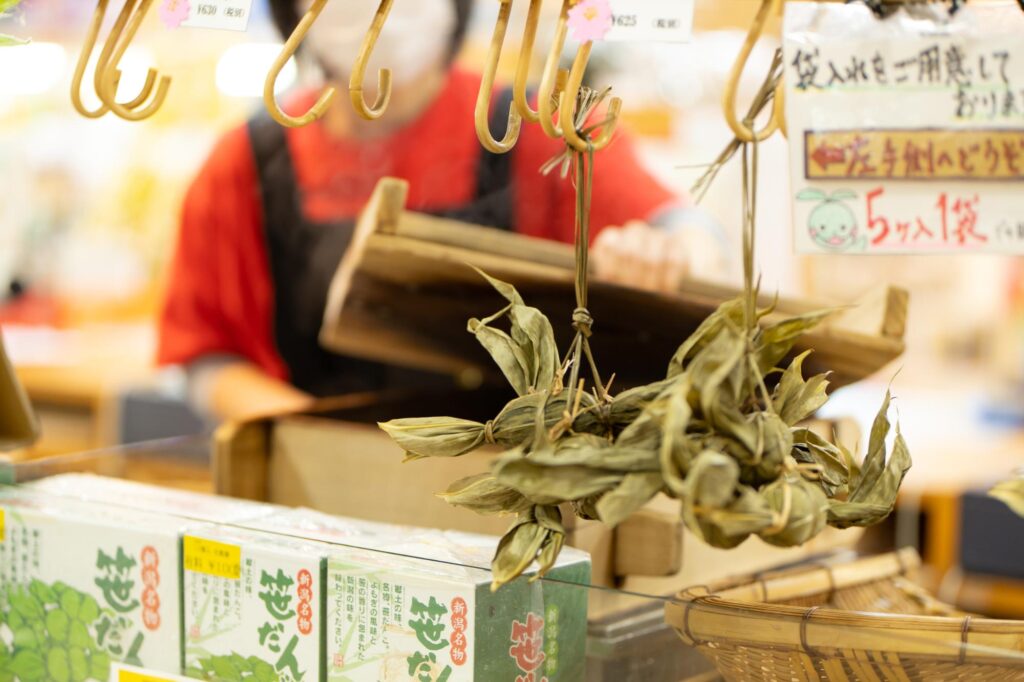 施設内では唯一、蒸したての新潟名物笹だんごを提供しています。お土産用でも車の中で食べてもOK。他にも新潟の有名アイスメーカーの高級アイス「Seihyo Sweets Selection」など、新潟ならではのお土産が揃います。